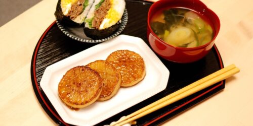 Start your day with a satisfying, authentic Japanese breakfast! This menu features a juicy Daikon (Radish) Steak with a sweet-savory glaze and a hearty Beef & Egg Onigirazu (sushi sandwich). It’s a perfect balance of vegetables and protein to power you through your morning….