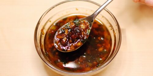 Serve in a bowl, and top with boiled bok choy and ra-yu.
